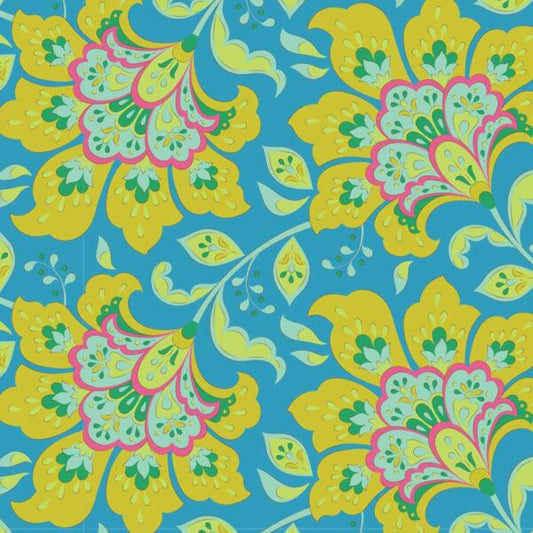 The vibrant colors and large, blooming floral designs are perfect for summer projects.