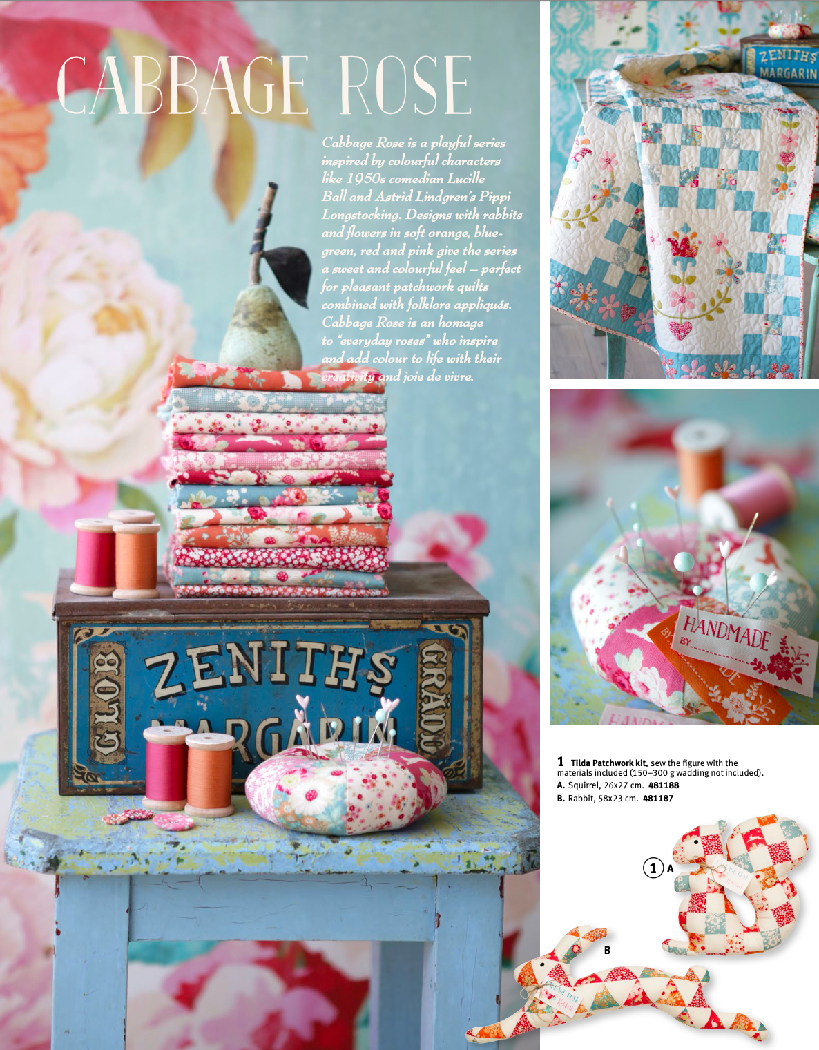 Tilda - Libby : Cabbage Roses / Memory Lane/Cabbage Roses (2色展開)